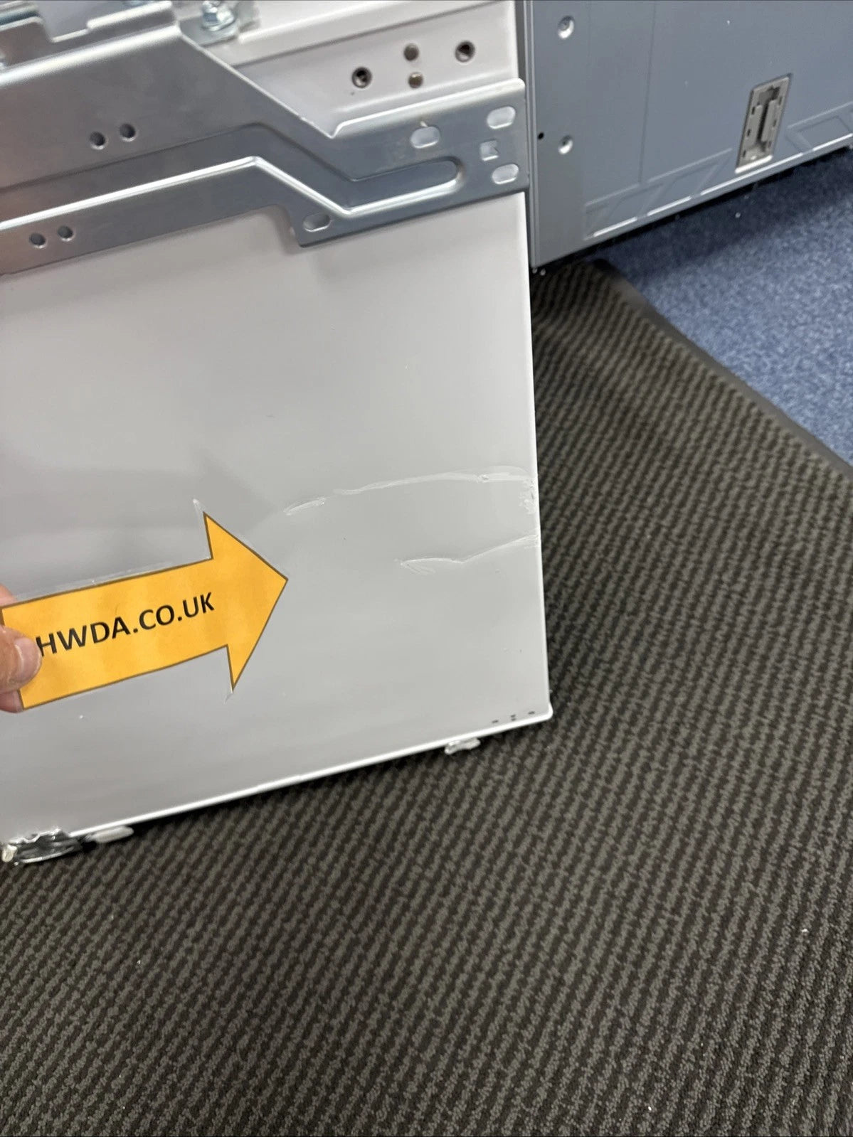 There are some marks and dents on the lower freezer door, which will not be seen when installed.