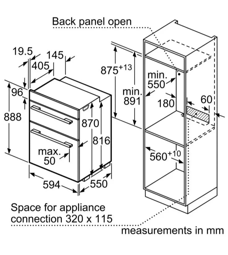 Neff N50 U1ACE2HN0B (10) Built-In Electric Double Oven in Stainless Steel - A Rated - HW181610