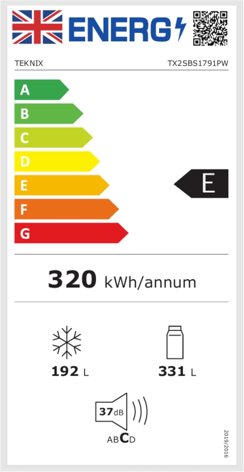 Teknix TX2SBS1791PW American Fridge Freezer in White - 523 Litre Capacity - E Rated - POHW0130