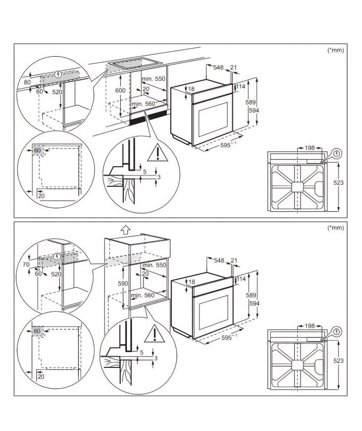 • Built-in Dimensions (mm) (HxWxD): 590x560x550