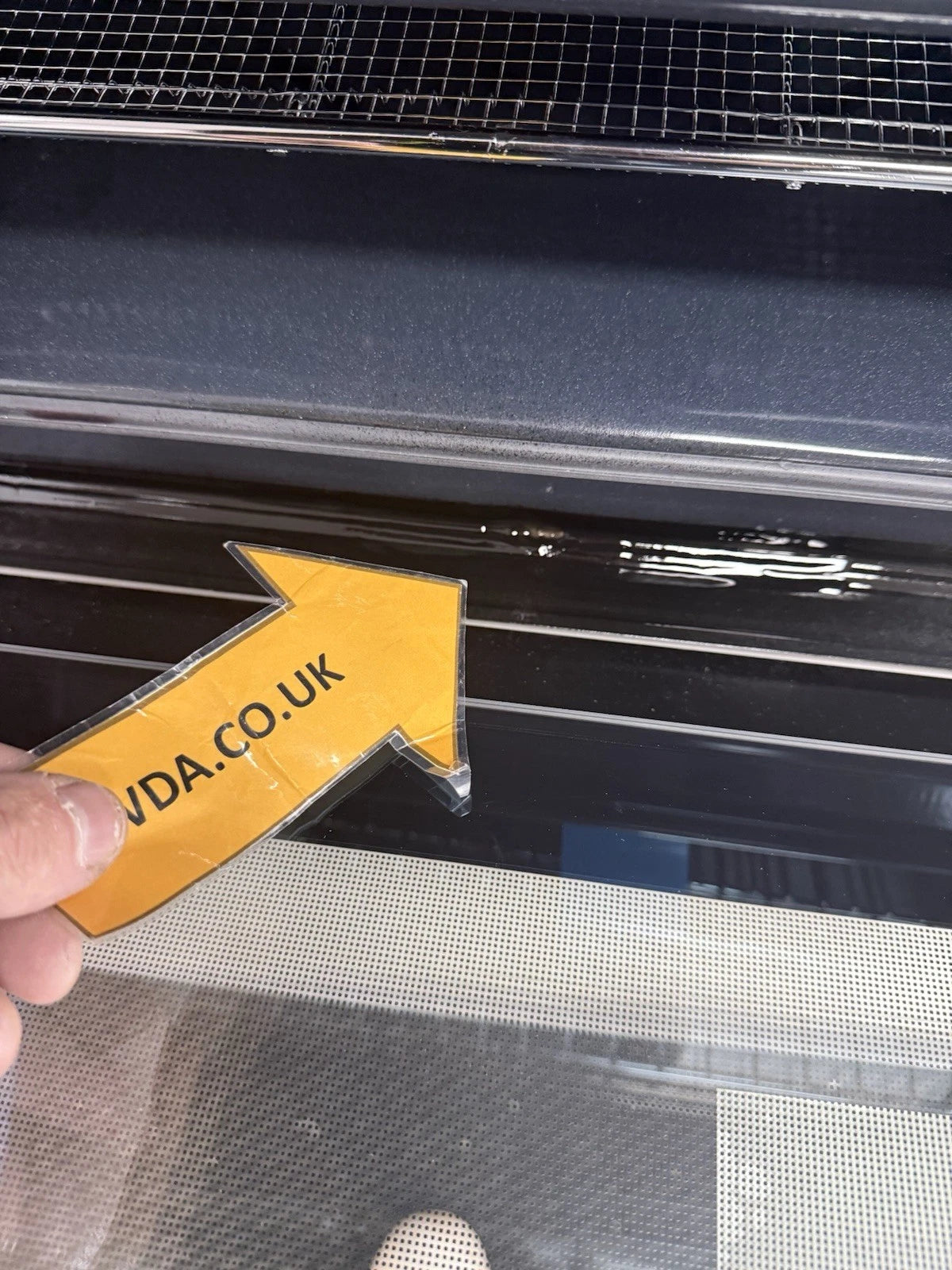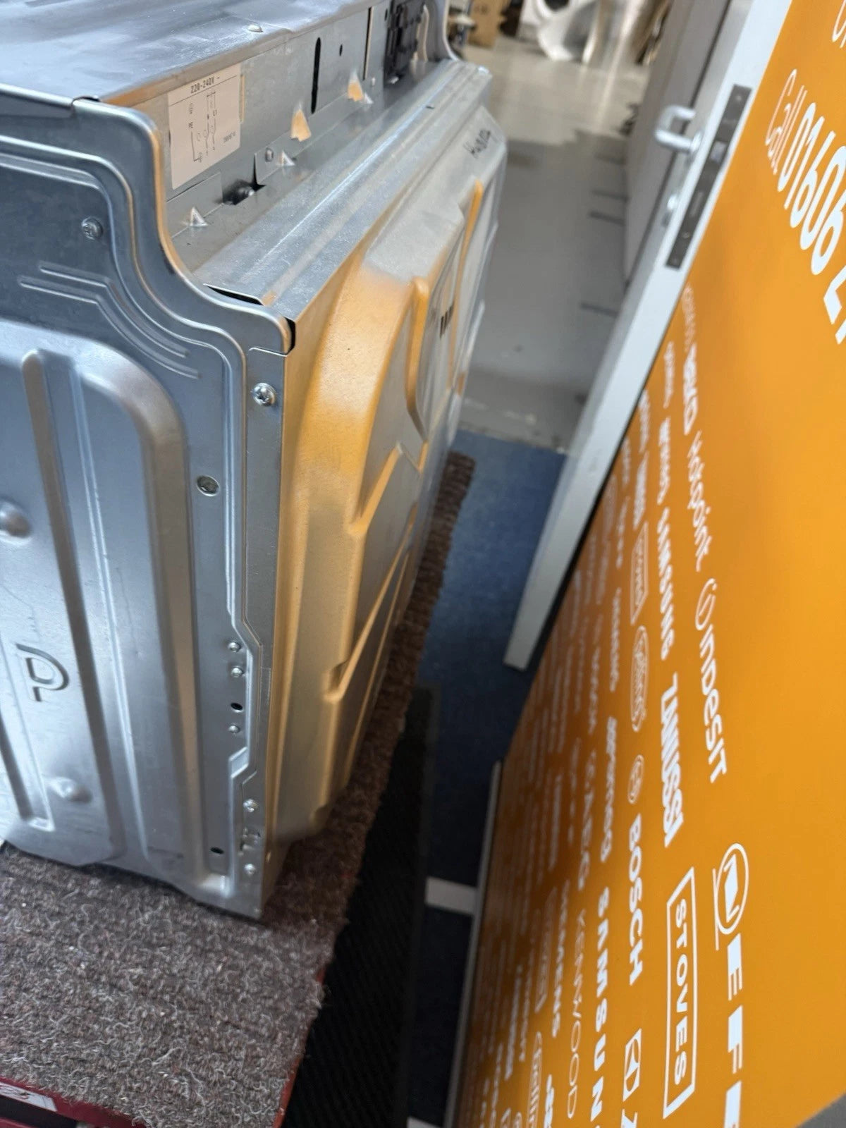 This is due to a slight dent on the inner bottom trim. The oven has been fully checked and this dent is purely cosmetic, and does not affect the item from working. This will not be seen when installed.