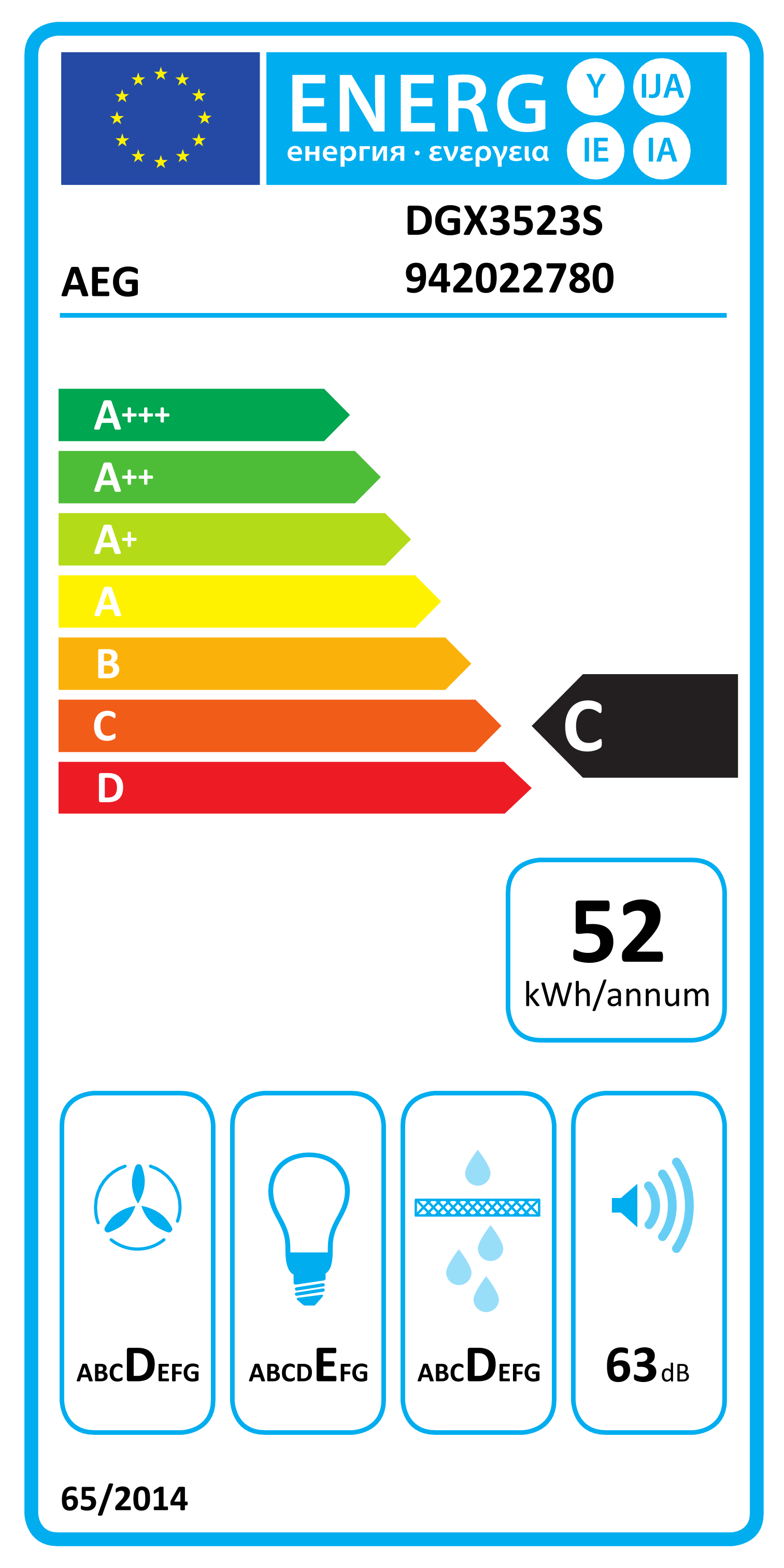 AEG DGX3523S Series 5000 52cm Built-in Canopy Extractor Hood in Grey - 3 Speeds - HW181898