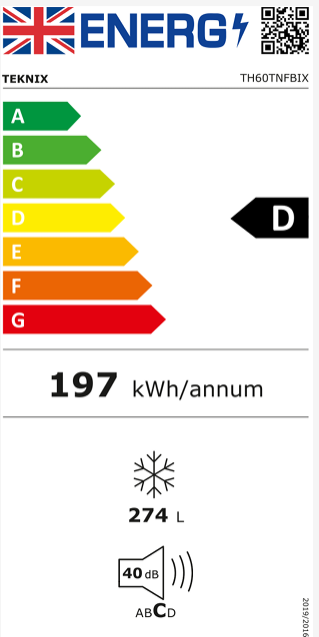 Teknix TH60TNFBIX 274L Total No Frost Single Door Freezer in Black Seel - D Rated - POHW0118 **(Suitable for Garage Use -15°C)**