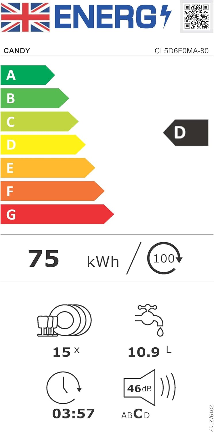 The Candy CI 5D6F0MA‑80 is a 60 cm full-size fully integrated dishwasher designed to blend seamlessly into UK fitted kitchens while delivering powerful cleaning performance for busy households.