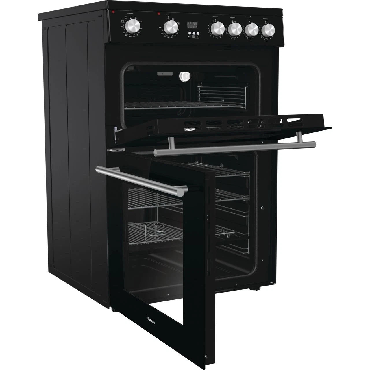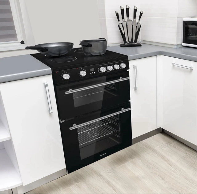 This Hisense 60cm Electric Ceramic Cooker with Double Oven in Black, is new from ex display stock.