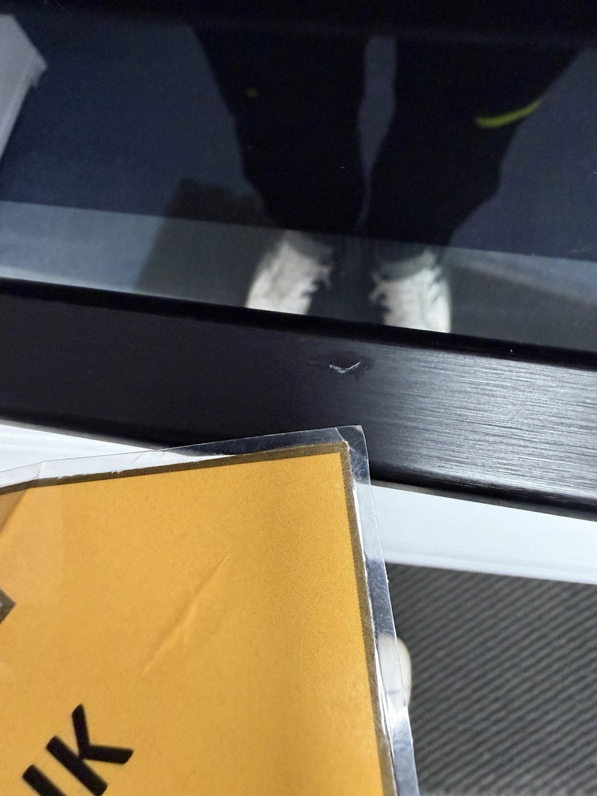 There is a tiny mark on the door handle and some minor scuffs on the top of the control panel.